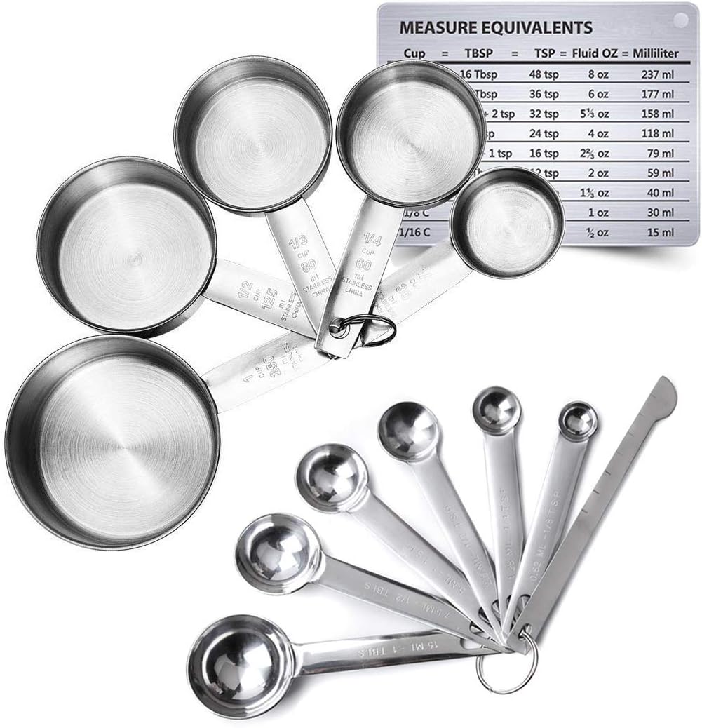 Amazon Com Kaishane Measuring Cups And Measuring Spoons Set Of 11 With Measuring Ruler Magnetic Measurement Conversion Chart 7 Pieces Measuring Spoons Set 4 Pieces Measuring Cups For Baking Stainless Steel Kitchen Dining