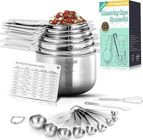 Amazon Com Measuring Cups And Spoons Set Bpa Free 18 8 Stainless Steel 19pcs Dry And Liquid 7 Measuring Cups 9 Measuring Spoons 1 Leveler 1magnetic Conversion Chart 1 Mini Whisk Dishwasher Safe Kitchen Dining