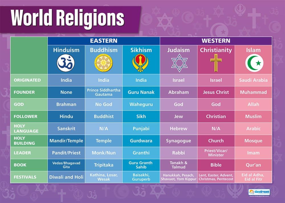 Amazon Com World Religions Religious Education Posters Laminated Gloss Paper Measuring 33 X 23 5 Religious Studies Charts For The Classroom Education Charts By Daydream Education Industrial Scientific