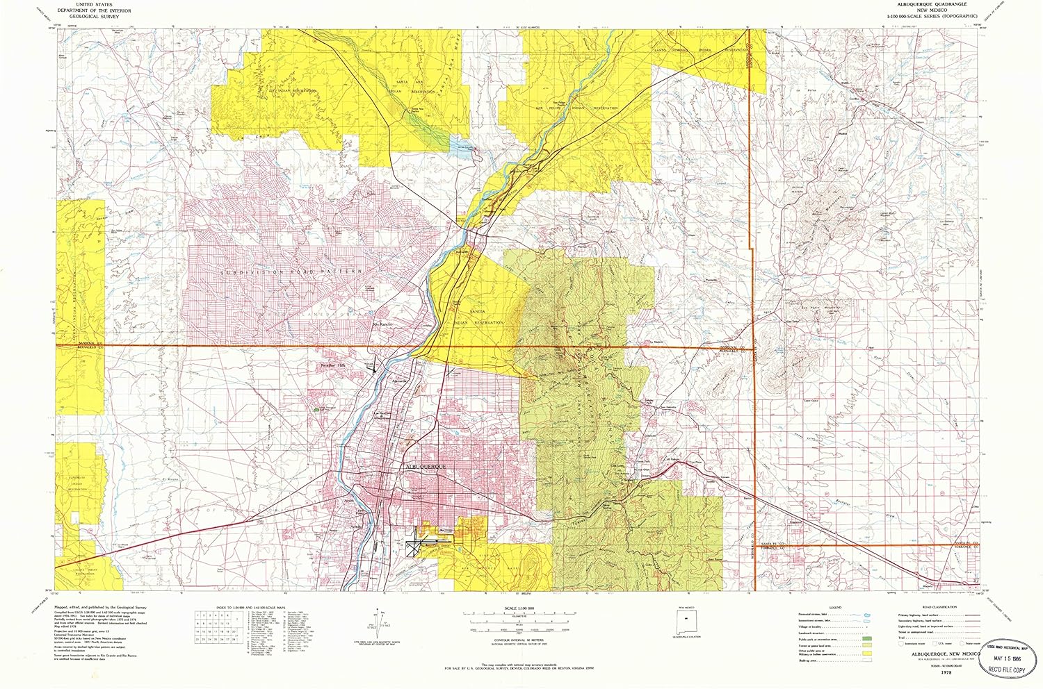 Amazon Com Yellowmaps Albuquerque Nm Topo Map 1 100000 Scale 30 X 60 Minute Historical 1978 Updated 1986 27 5 X 40 7 In Polypropylene Sports Outdoors