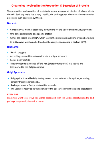Organelles Involved In The Production And Secretion Of Proteins Teaching Resources